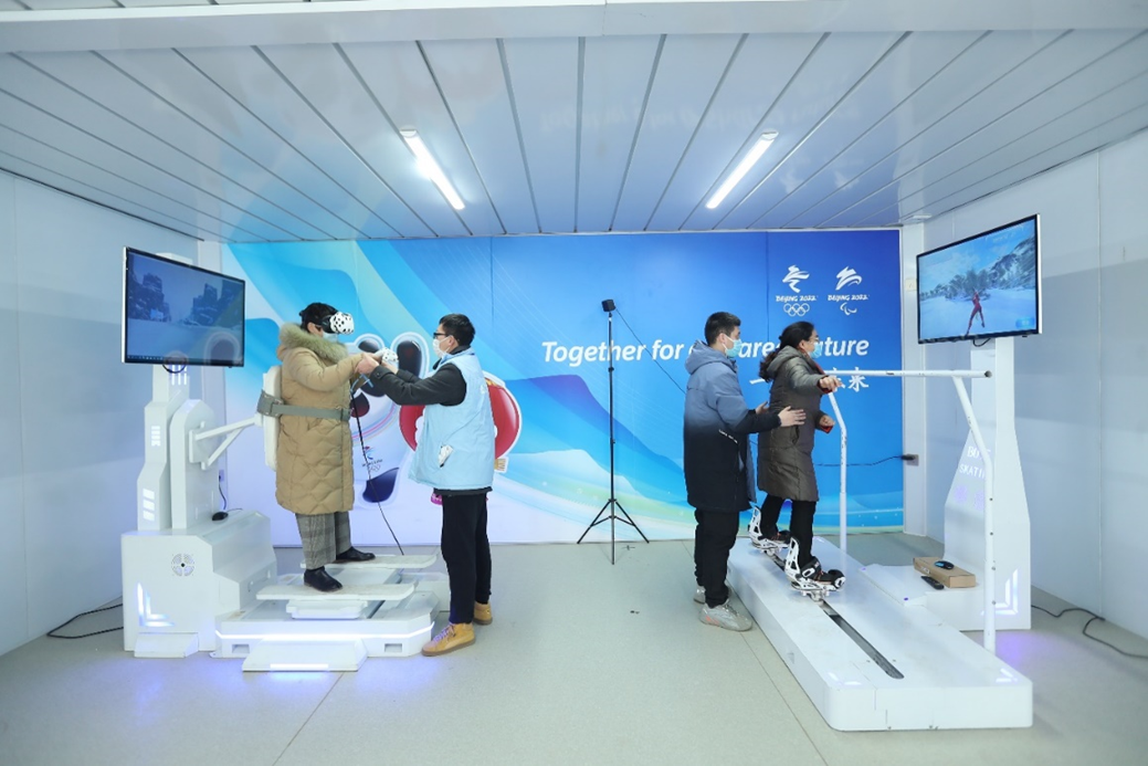 作为北京国际科技创新中心核心区,海淀区冬奥文化广场在各功能区建设中凸显浓郁的“科技风”,让冰雪运动在画面中“活”起来,生动形象地呈现冰雪激情。科学城新使命——海淀城市规划展通过展板文字、图片、视频方式展示海淀城市形象,突出“一村三山五园”建设成果,展示海淀区文化科技融合成果。室内冰雪体验区突出冰雪与科技融合主题,设置VR滑雪机、滑冰游戏机两类高科技体感互动体验器材,让市民朋友可以通过科技手段体验到冰雪运动的速度与激情;使用“液态仿真冰”这一科技专利产品,搭配满足不同年龄段观众使用的冰壶,让市民朋友切身感受冰壶运动的魅力。