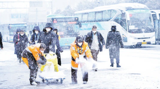 据统计,截至昨天20时,全市共出动人员4.5万人次;多功能除雪车、融雪车、清扫车、清运车等作业车辆6518车次;撒布器、推雪铲、滚刷、步道机械等除雪设备3514套次,人工除雪设备2.9万台次。