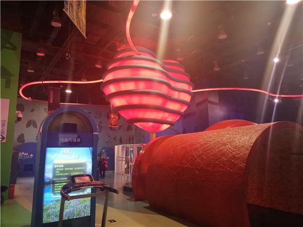 比如在科技馆三层科技与生活A展厅当中,有一颗“跳动着的大心脏”,闪动着波谱最长的红色光。红色光在视网膜上成膜的位置最深,给视觉造成扩张感与迫近感,容易造成视觉疲劳。