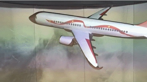 在中国大飞机这里,你不仅可以为我们的国产大飞机设计涂装,更好玩的是,涂好色的飞机不是出现在大屏幕上,而是直接投影在你眼前的飞机模型上。伴随着屏幕画面的迁移,飞机如同正在空中飞翔一般。