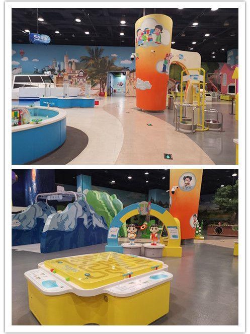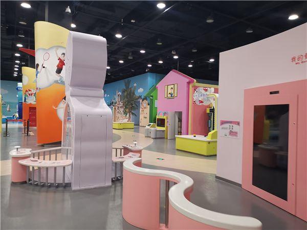 当中展项主色调多为粉色、蓝色、绿色、橙色和黄色等,总的来说,乐园中展项选择的都是对人们身心有益的色彩,不管是大人还是孩子,处在这样的色彩之中,都会感到身心愉悦。
