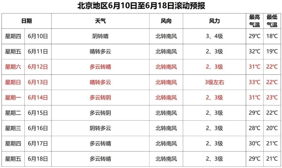 据北京市气象台消息,当前至6月10日8时,预计北京城区及副中心有中到大雨,局地暴雨。降雨时短时雨强较大,并伴有雷电、短时大风,局地可能有小冰雹,请注意防范。北京地区6月10日-18日天气预报。