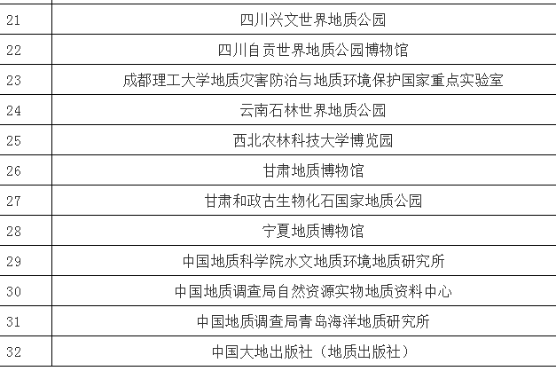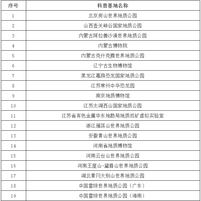 国家自然资源科普基地名单