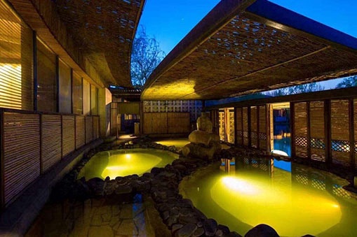 春晖园温泉度假村内的温泉泉眼水温常年保持60度,属弱碱性碳酸氢钠温矿泉。即使是数九寒冬也可尽享水疗的乐趣,可结合温泉美容保养,活水疗养之复合式SPA休闲健康中心。其中以泳装共浴的温泉设施为其设计主轴,建有男女共浴的温泉浴场,美容SPA,户外温泉泡池等设施,拥有独特的全天候温泉泡池。温泉分室内、室外和半室外,半室外的景色最好,可以泡温泉赏湖景,且晚上泡更有情调:蜡烛、香薰、香炉,打开水下灯和庭院灯,再放首音乐,浪漫!