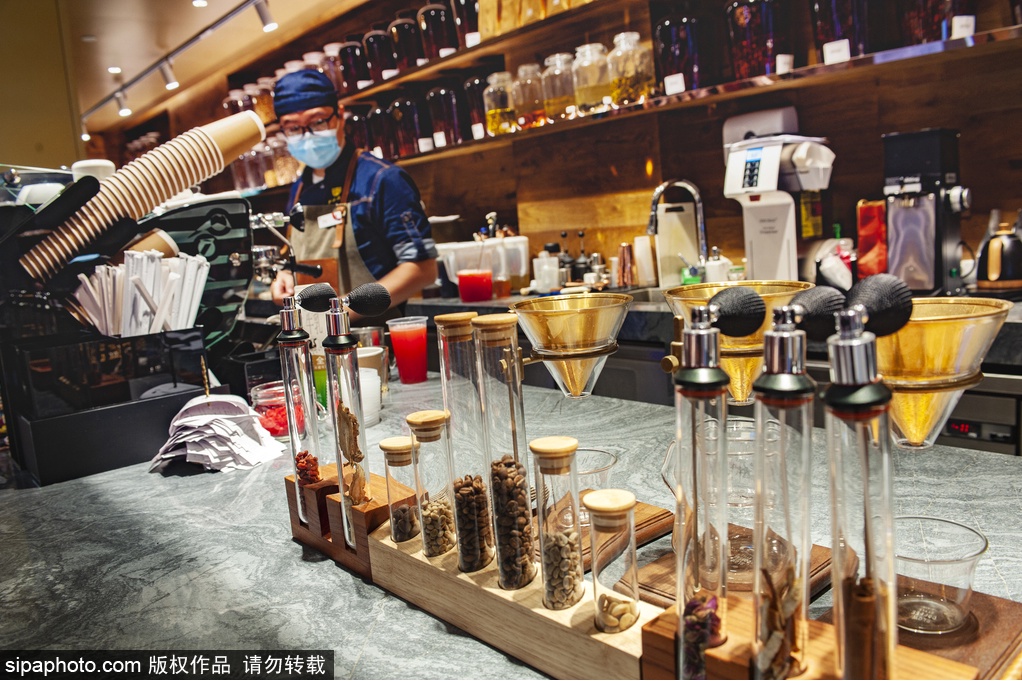 2020年8月4日,北京朝阳区,老字号药企同仁堂推出加入草本或药本植物咖啡,打造健康理念,受到年轻人追捧。