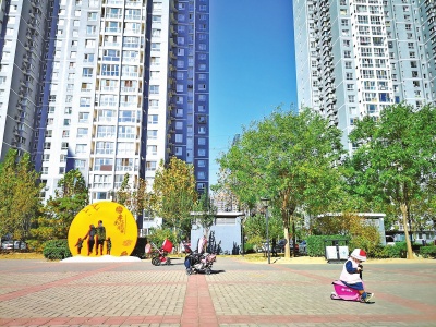 在太阳宫乡回迁楼小区圣馨家园北侧,一处新建成的开放性休闲绿地内,三三两两的居民正在自家门口的“后花园”里休闲散步。公园内地势高低起伏,特色景墙与树阵、草坪、秋季花景分布其中,营造出多层次的景观。不仅周边环境得到提升,圣馨家园小区内环境也显著改善。