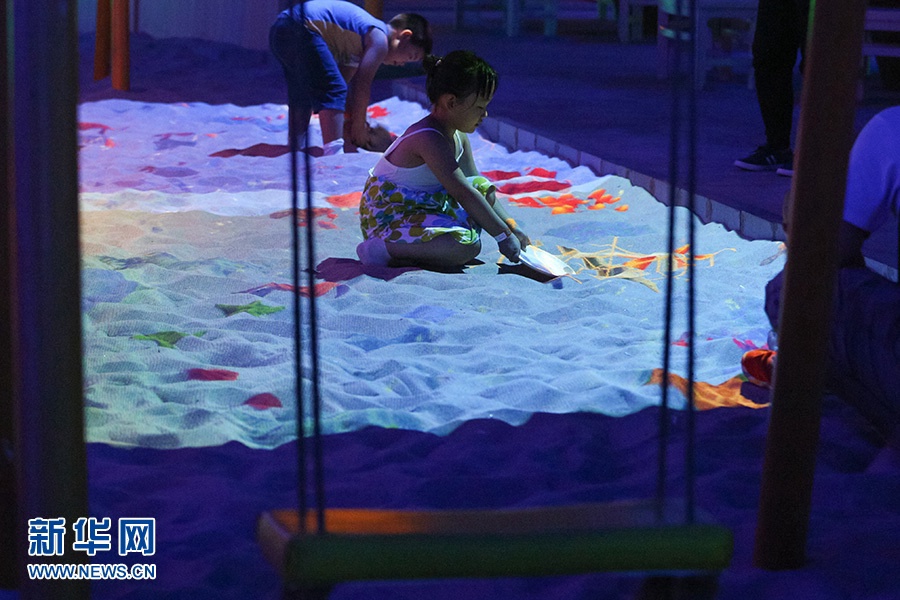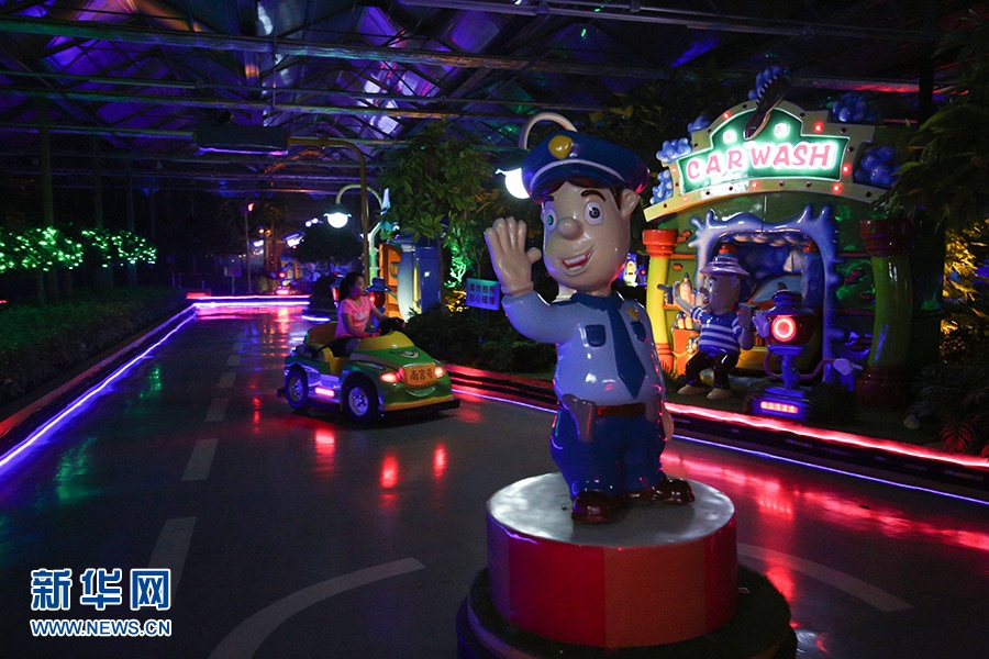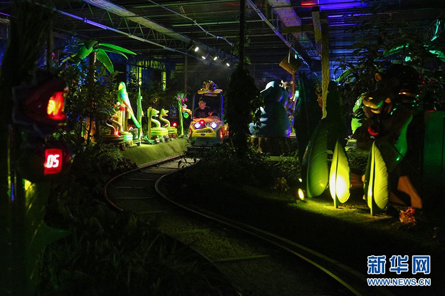 北京南宫旅游景区“会发光的植物园”正式开园。游客在体验游乐项目。新华网 陈延特 摄