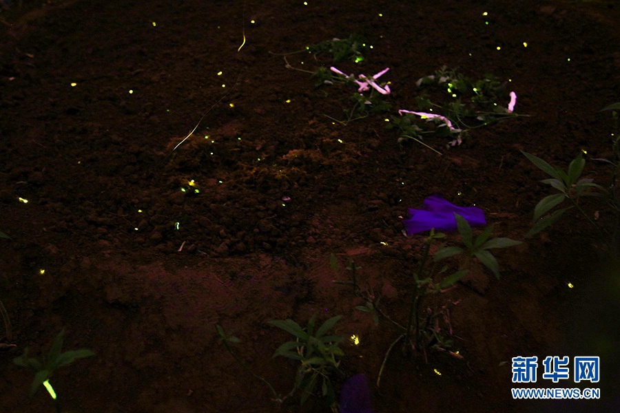 北京南宫旅游景区“会发光的植物园”正式开园。园内飞舞的萤火虫。新华网 陈延特 摄