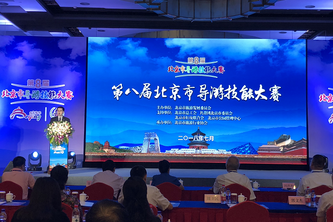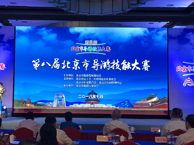 2018年7月13日上午,由北京市旅游发展委员会主办,北京市总工会、共青团北京市委员会、北京市妇女联合会、北京市公园管理中心作为支持单位,北京市旅游行业协会承办的“第八届北京市导游技能大赛”决赛暨颁奖典礼在北京国际饭店盛大举行。300多位现场观众亲眼见证了这次盛事。