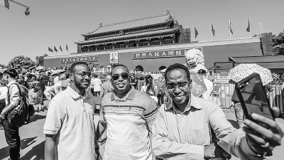 昨天,几名来自非洲国家吉布提的外国友人在天安门城楼前愉快合影。他们称赞北京是一座现代化的大城市,中非合作论坛北京峰会期间,市民的热情好客也给他们留下了深刻印象。