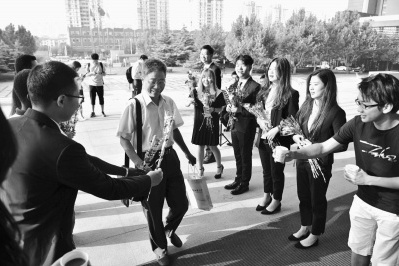 教师节当日为老师送上鲜花是北工大人的传统,已坚持12年。北工大教师翁剑成告诉记者:“教师节是加油站,鲜花和咖啡为我们增添动力,我们将以劳动过节,履行教书育人的使命!”