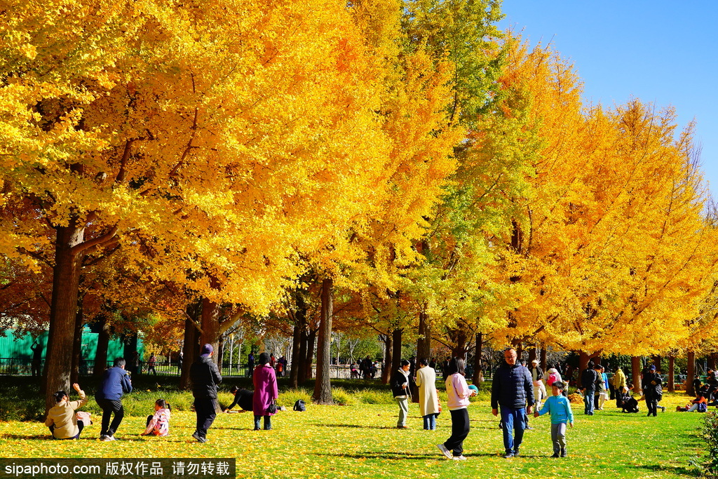 北大西门的那两株古银杏,是北大秋景的标志。除此之外,图书馆北面、未名湖边、生物楼与第一教学楼之间也有一些银杏树。银杏金黄的叶子映衬着图书馆、一塔湖图、教学楼以及看书的学子和私语的恋人,真是比面片更像画片。