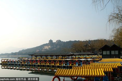 站在岸边,放眼望去,湖面上龙船、画舫,条条小船,载着游客环湖赏景,亭台楼阁桥岛殿宇,纷纷倒映在水中,微风轻拂岸边杨柳,如此诗意的体验!颐和园共有电瓶船、脚踏船、龙船和画