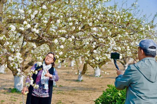 人民网北京4月4日电(孟竹) “柳色黄金嫩,梨花白雪香”。4月4日,庞各庄镇第26届大兴梨花旅游文化节启动仪式在大兴区庞各庄镇开幕,本届梨花节以“凤凰展翅瞰花海 盛世花开待君来”为主题,除了万亩梨花诚邀各界游客共赴花海以外,精心打造梨园徒步、花香寄语、摄影大赛等多项体验活动,以及延续多年的古梨树认养,号召社会力量保护以梨花村为核心的老梨树生态资源。此外,将通过每年的梨花节、采摘节活动,带动梨花村葫芦烙画传统工艺,特色美食全梨宴、状元水饺、祖传扣肉等相关产业。
