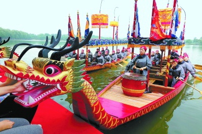 本报讯(记者 王谌)端午节,民俗活动丰富多彩。圆明园最大水域福海上演龙舟展演,两艘气势磅礴的皇家仿古龙舟首次亮相。玉渊潭公园十余项民俗体验活动帮助小朋友感受端午文化。