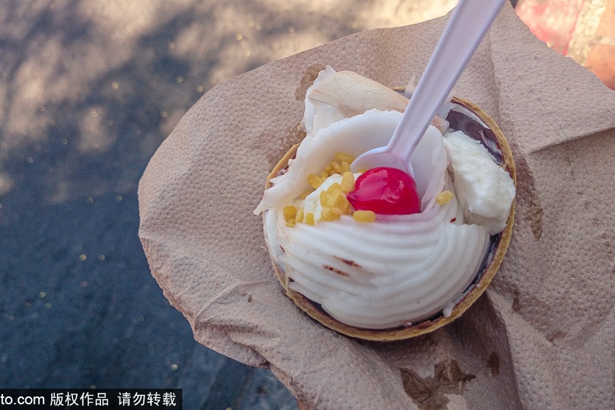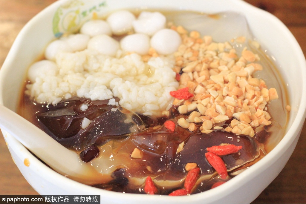 颜控不能不pick的实力派!这款一定要选择用透明杯装着,能看见粉红色的玫瑰花瓣漂浮在杯中,随便一摆都可以拍出很好看的照片~吃之前要先用勺子搅拌,底部的玫瑰花水会慢慢被晕染开,渗透进了冰粉的每一个缝隙,还没开吃就感受到“养生系”诚意!入口的一瞬间,整个世界都是粉红色的玫瑰花香!点睛之笔就是四川阿坝运来的天然蜂巢,直接一整块放在冰粉上,口味中融合了蜂蜜和红糖的2种甜,清新沁人的味道让人着迷~