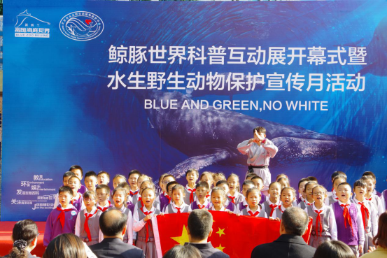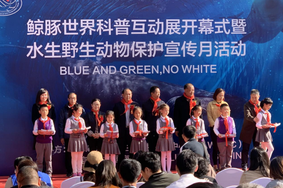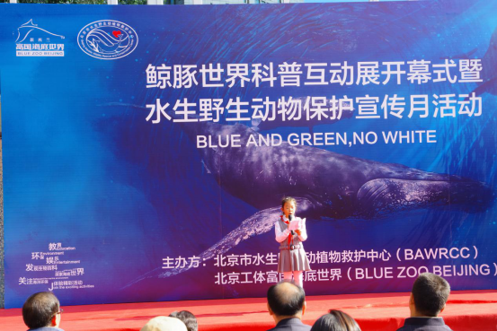农村农业部渔业渔政局栗倩云巡视员,全国水生野生动物保护分会李彦亮会长,北京市水生野生动植物救护中心时晓主任,富国海底世界董事总经理常英女士以及来自国家海洋局、北京市科协、朝阳区科协、工体中心、国际环保组织等各级领导和嘉宾出席活动,百余名师生代表、环保志愿者以及社会公众到场参与本次开幕式。