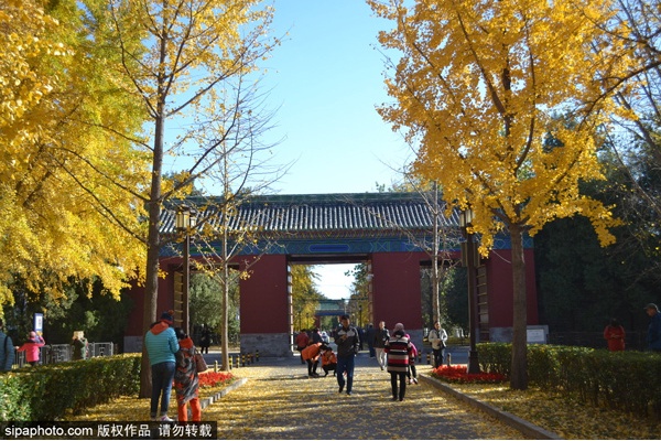 秋风习习,金灿耀眼。地坛公园内的棵棵银杏树被渲染成了金黄色,纷飞洒落的银杏叶与幽静肃穆的皇家坛庙形成独特的“红墙金叶”,既飘逸又庄重,成为京城秋日中一抹难得的风景。一年一度的地坛金秋银杏文化节在这一时节拉开帷幕,迎接各方游客。