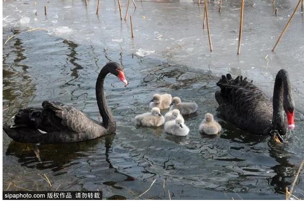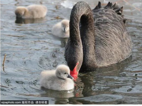 黑天鹅父母责任心很强,自小黑天鹅破壳而出后,寸步不离地保护着自己的孩子,就成为它们的使命,因此提醒前去观看黑天鹅的朋友们,一定要保持适当的距离,不要惊扰到它们一家。