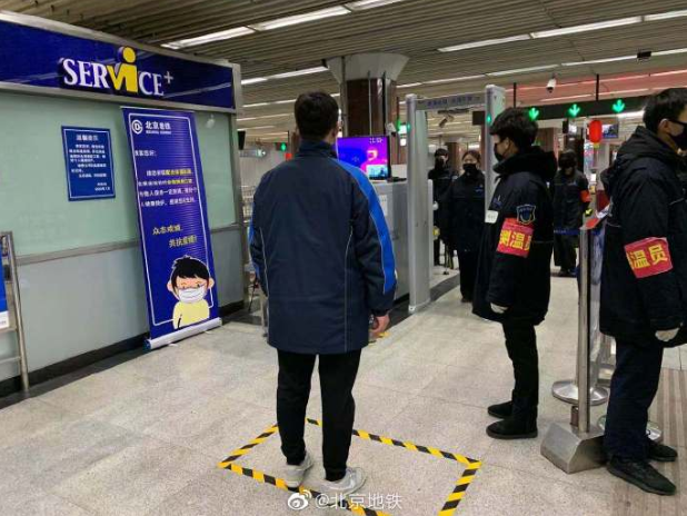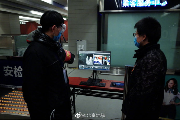 为做好疫情防控工作,目前北京地铁已在所辖全线车站采用手持式体温监测仪、非配合式热成像体温测试系统等方式对进站乘客进行测温。非配合式热成像体温测试,不需要乘客停步手持进行测温,在进入安检门前即可自动测温,相对于手持测温仪,测温速度更快。