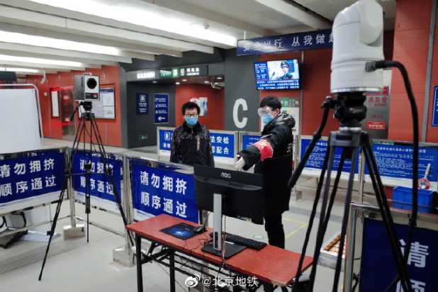 为进一步提高进站人员测温效率,地铁积极推进非配合式热成像体温测试系统的配备安装工作,截止2020年2月3日,非配合式热成像体温测试系统布设车站已增至35座,共计179台。北京地铁在此感谢您对地铁测温工作的支持与配合。