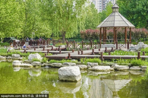 北小河公园虽然仅有22.8公顷,却有水系有山坡,还有竹林,有林海涛声,百花飘香!还有一座小湖,一座栈道,一方荷塘。