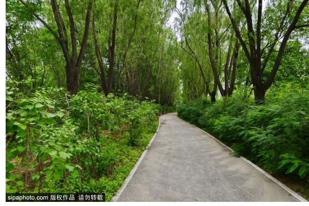 这里的小道也非常的有诗意,似有一种曲径通幽之感,漫步在绿树碧草间,清凉的感觉顿时传遍全身。
