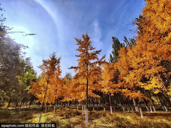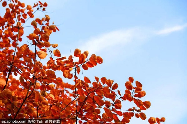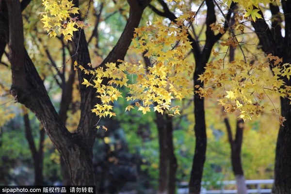 奥森是一个可以看遍各种秋景的大森林。黄栌、丁香、枫树、银杏······都是一片一片的,足够过足眼瘾。点点的红、翠翠的绿、片片的黄......