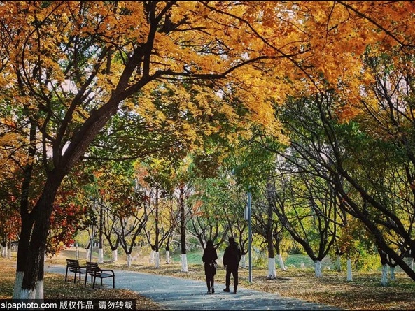 蓝天白云下的奥森,层林尽染、五彩斑斓,每一个角落都有如诗如画的景色~