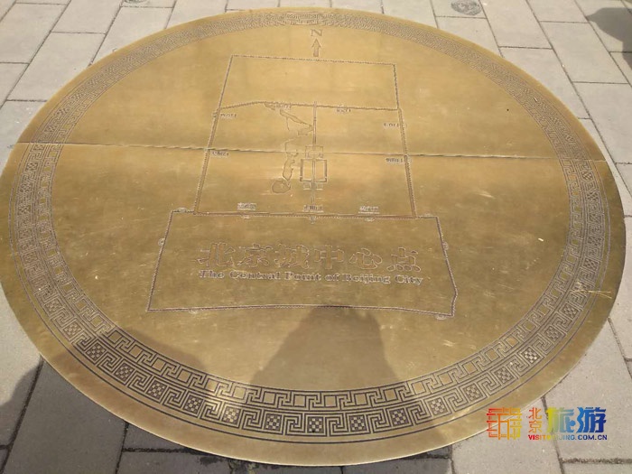 万春亭前有北京“四九城”中心点标志,同时也是北京中轴线的中心。在这里南向可以俯瞰故宫,向北望可以见钟鼓楼。