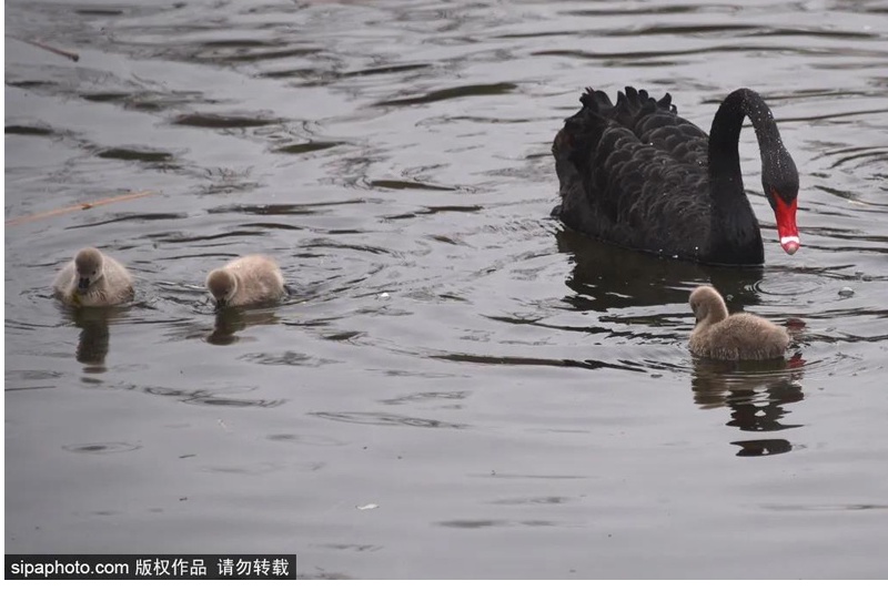 在圆明园偌大的水域中,高贵的黑天鹅早就开始带着春天孵化的宝宝,悠然划开水面。