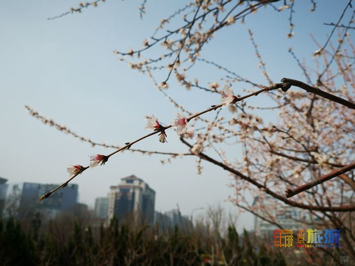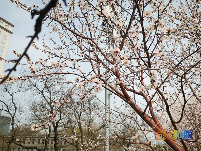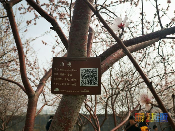 公园内的山桃花具体位置在劳模广场东北角和明城墙墩台处,在这里可以拍到城墙下的桃花。