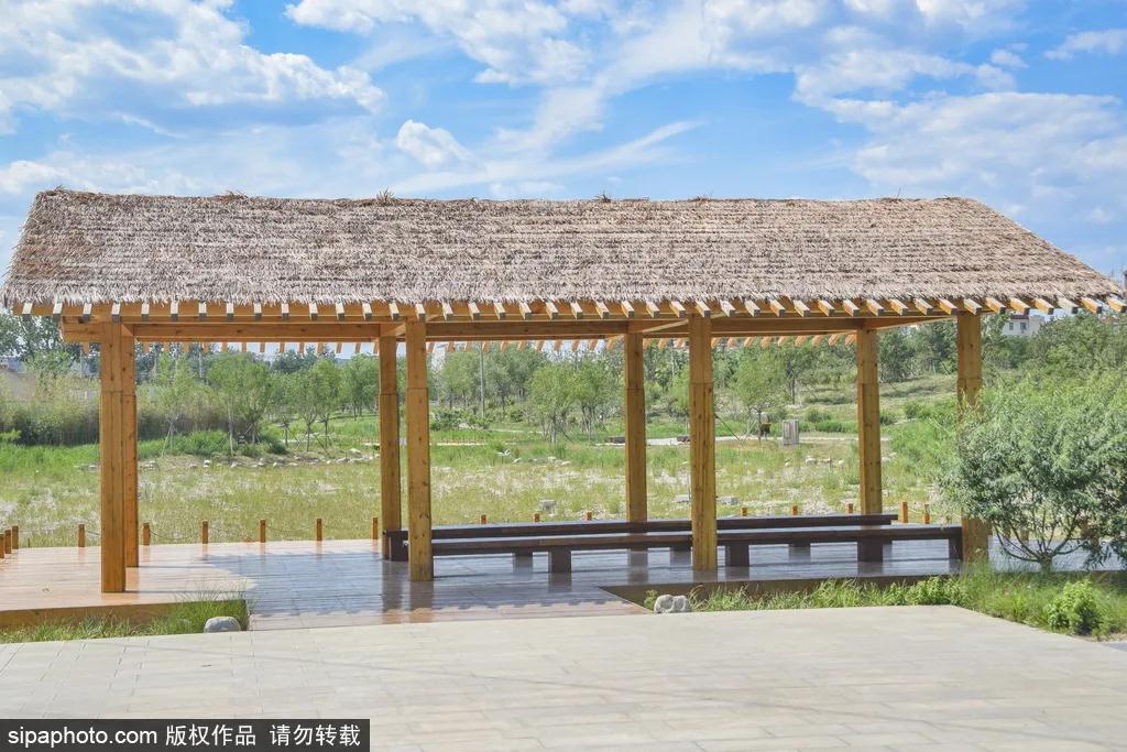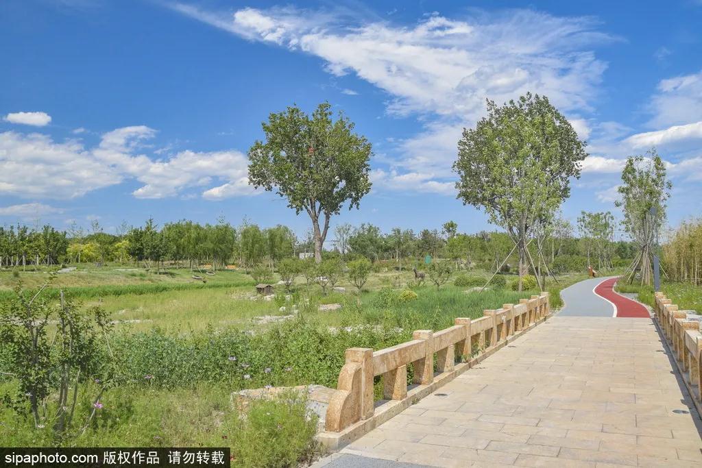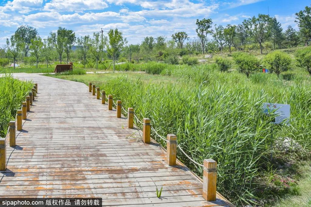 他们的笑声在这里像百灵鸟一样动听,仿佛是回到了最原生态的休闲方式,木栈道在草丛中延展和远方的天空相接。公园内设有跑道,在这样的环境里跑步,着实是洗肺的好方式!