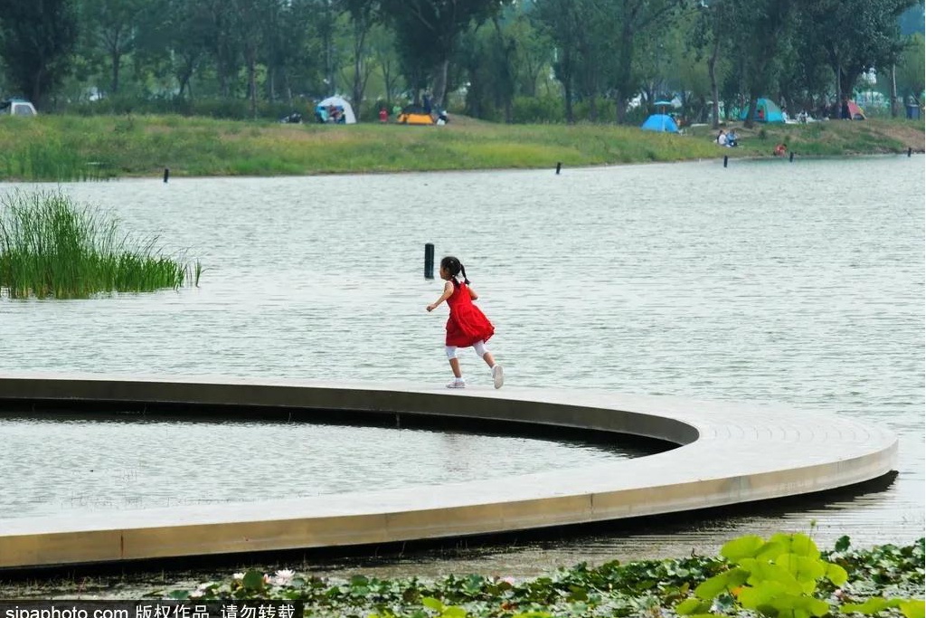 久敬庄公园去年正式对外开放,它被称为“南中轴线上的一颗明珠”,绿地遍布,湖水澄澈,林水相依,既是个出片儿的好地方,也是个夏日避暑圣地。