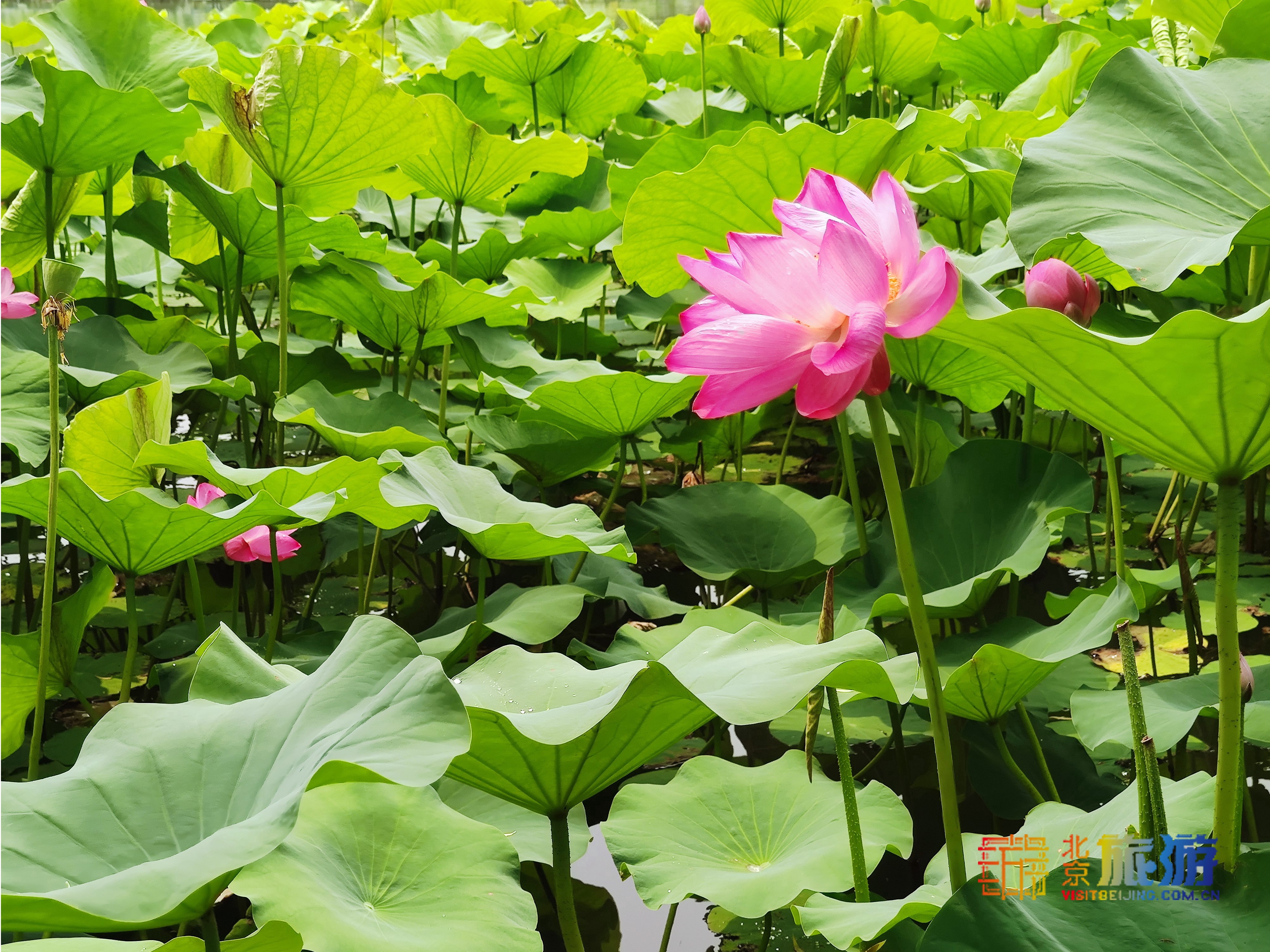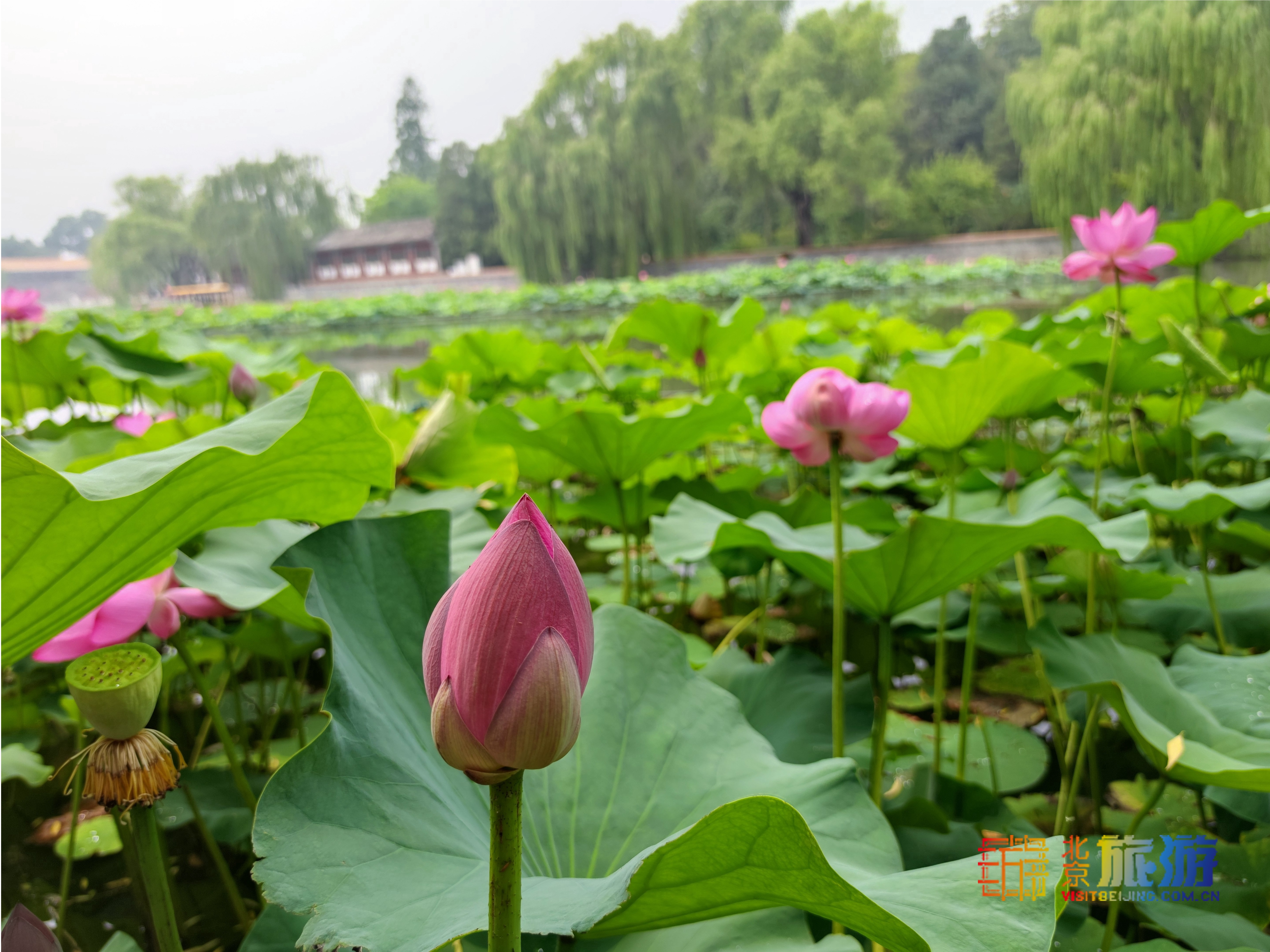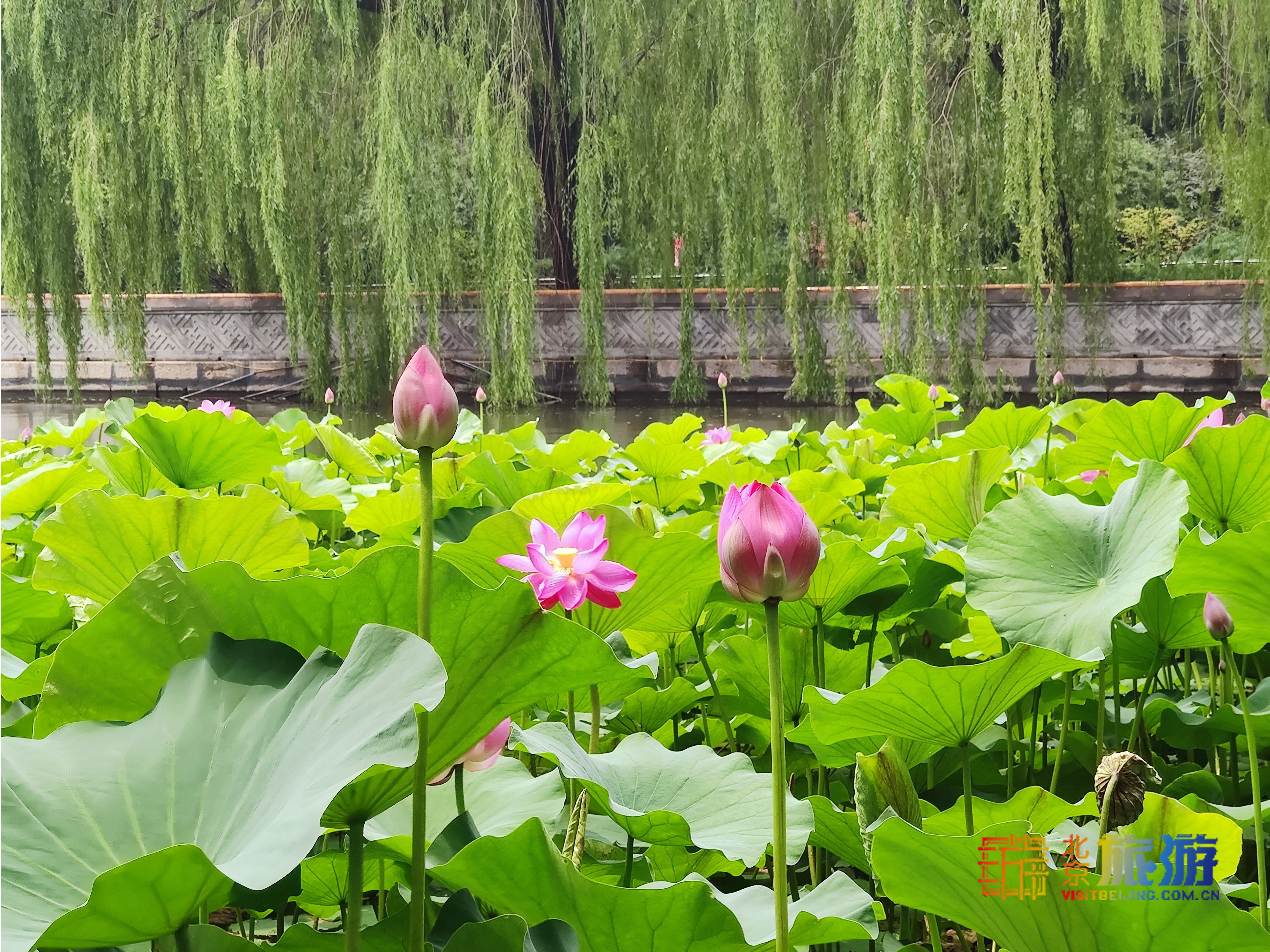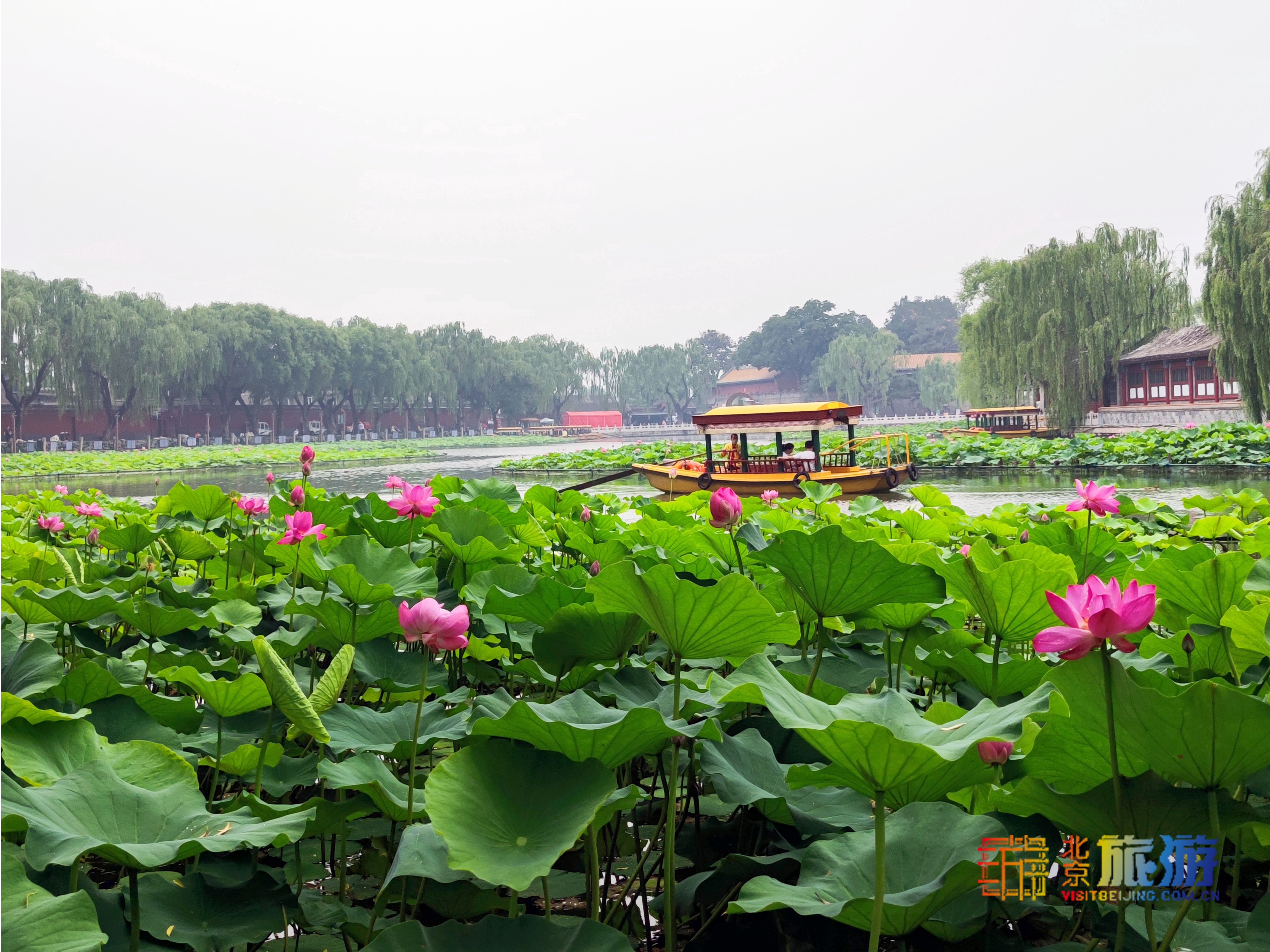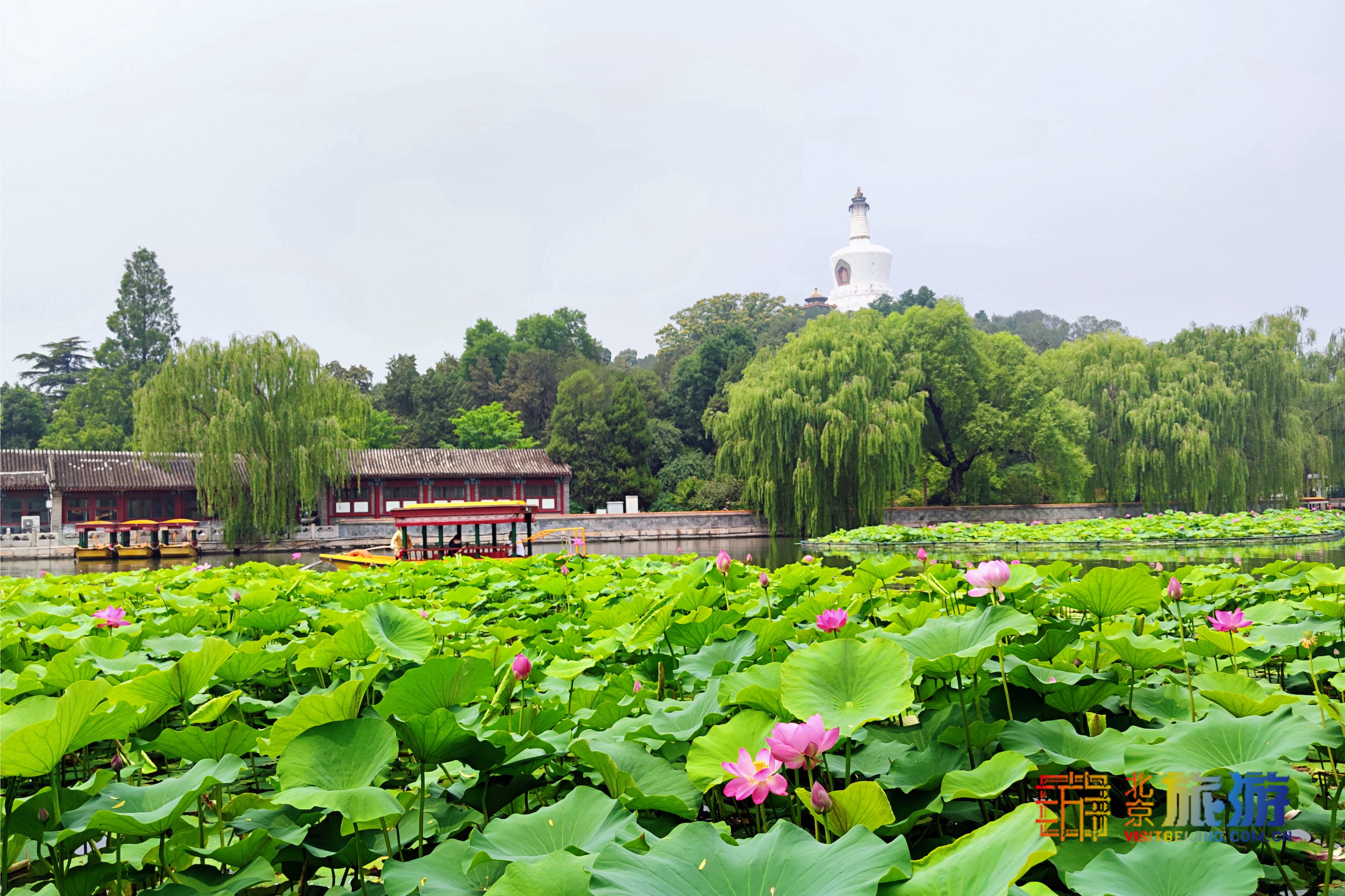 2021年6月25日,北海荷花初绽,一年一度的“荷花映白塔”美景重现。