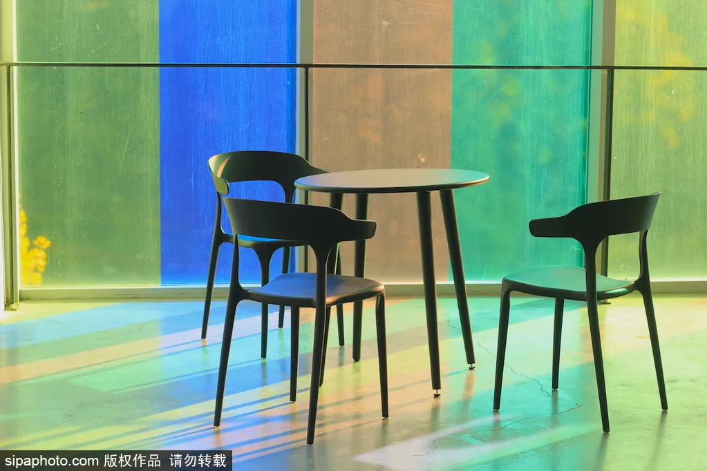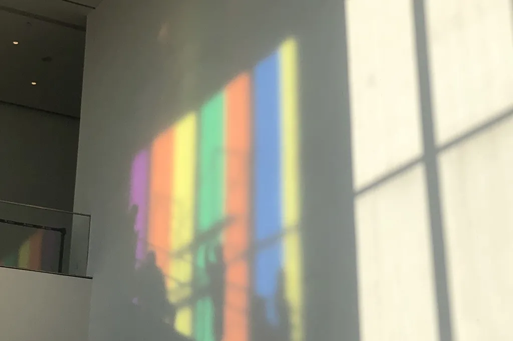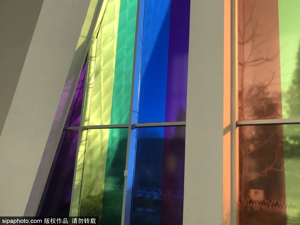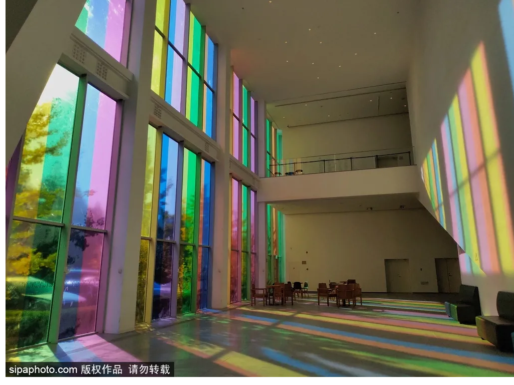 高大的彩虹落地窗,给馆内所有事物增加了色彩。