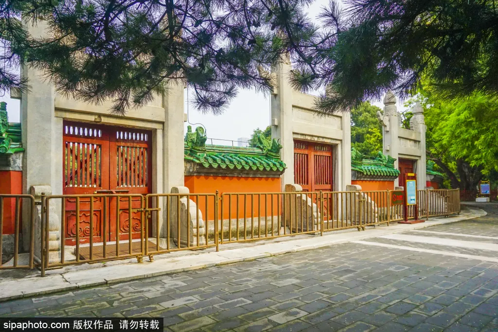 坛壝是公园的主体建筑,坛西向四边各有九级的台阶,周围建有圆形砖墙,矮墙正门西向,三门六柱,南、北、东三面各有一门两柱。