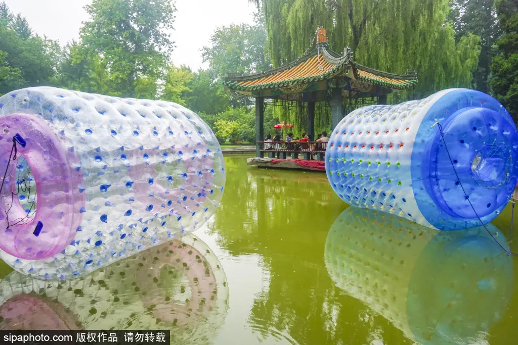 公园里也有游玩项目,水上波波球挺适合年轻人,累了就在旁边的亭子里歇歇、吹吹风,也挺惬意的~