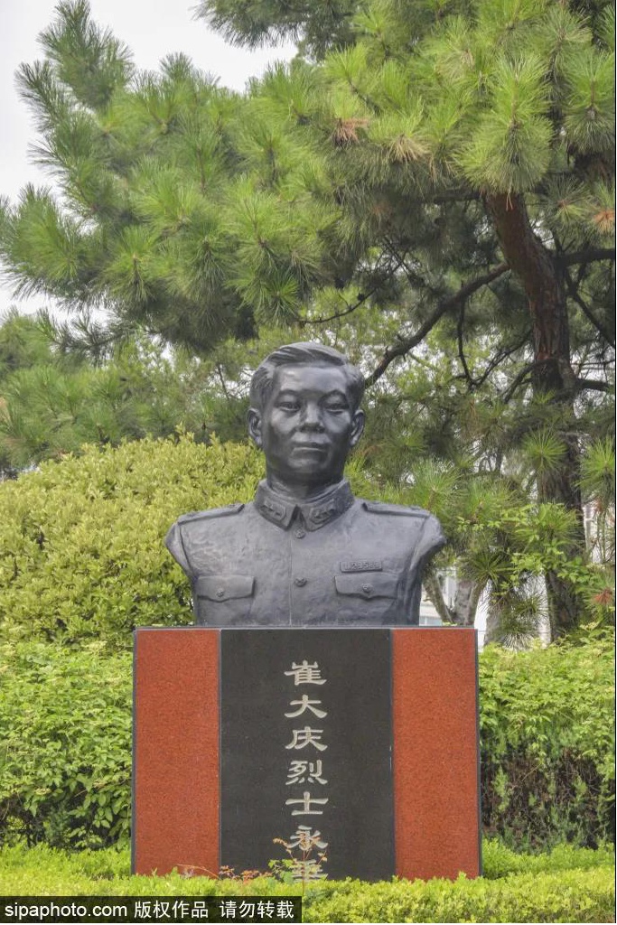 园内有一座镌刻着“崔大庆烈士永垂不朽”的铜像,矗立在苍松翠柏间庄严肃穆。