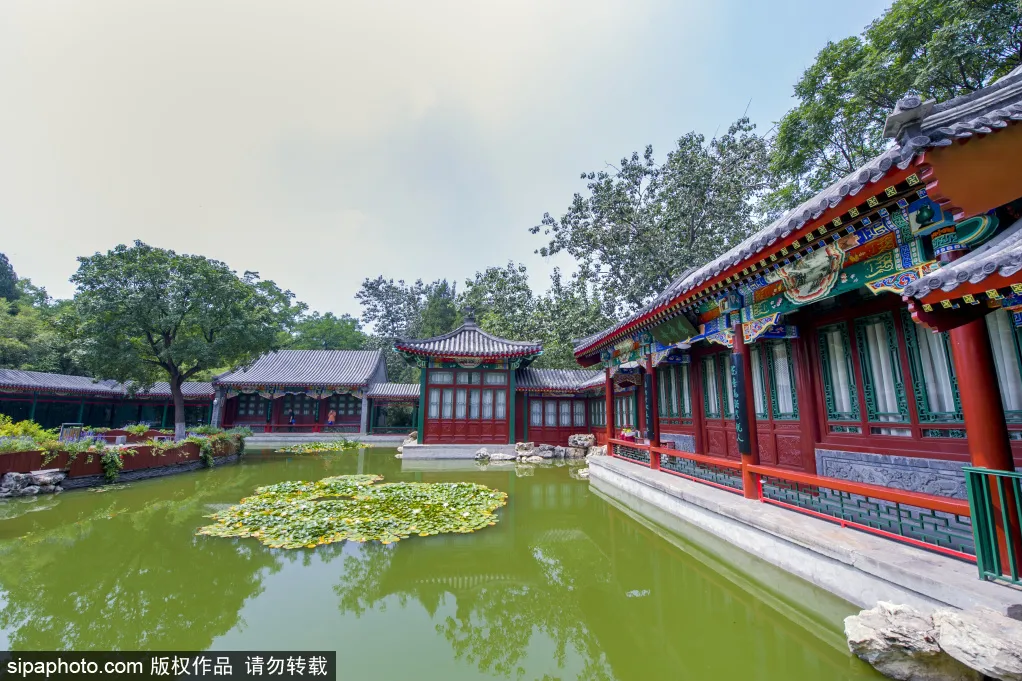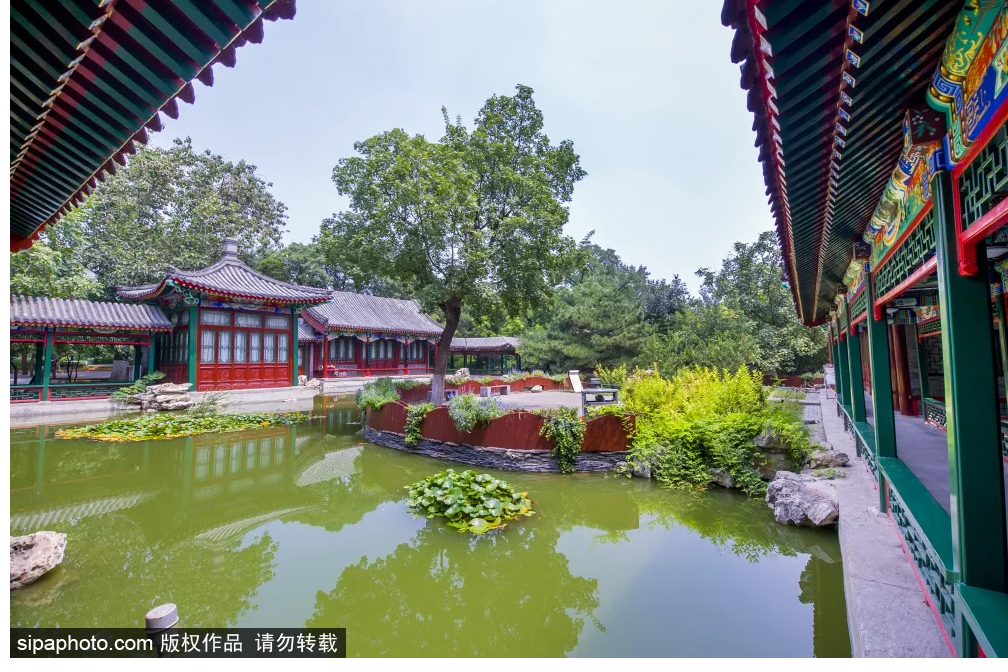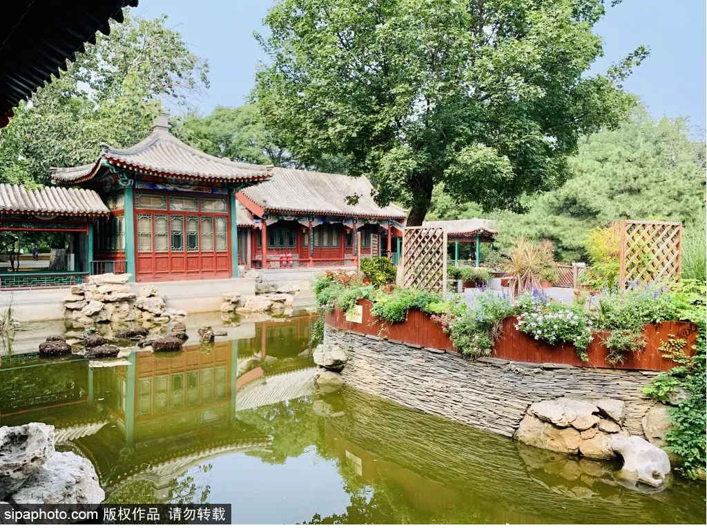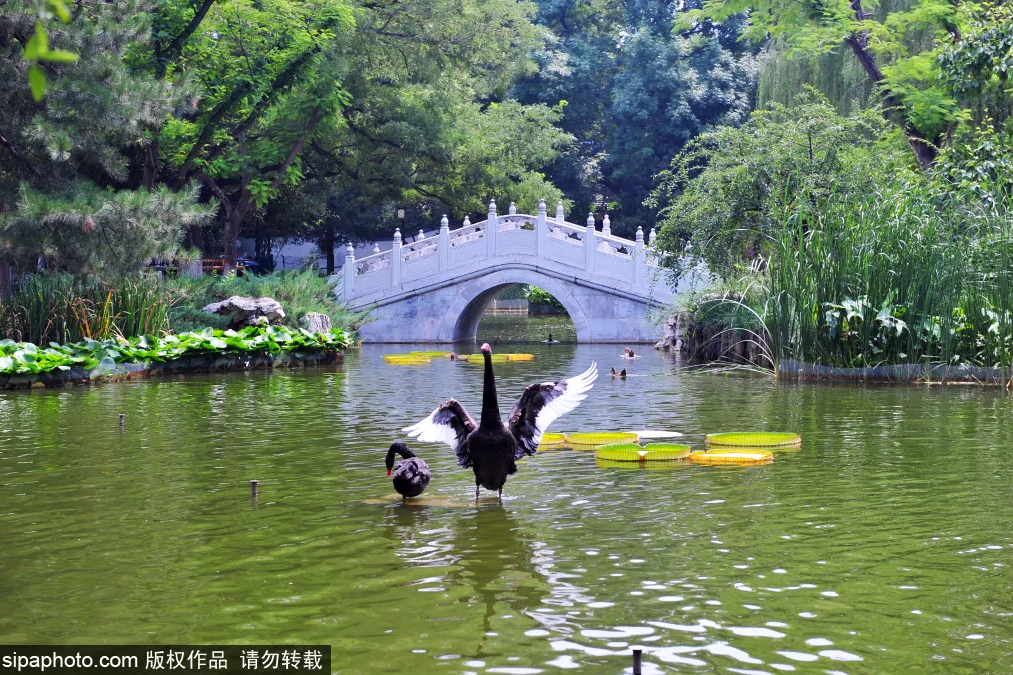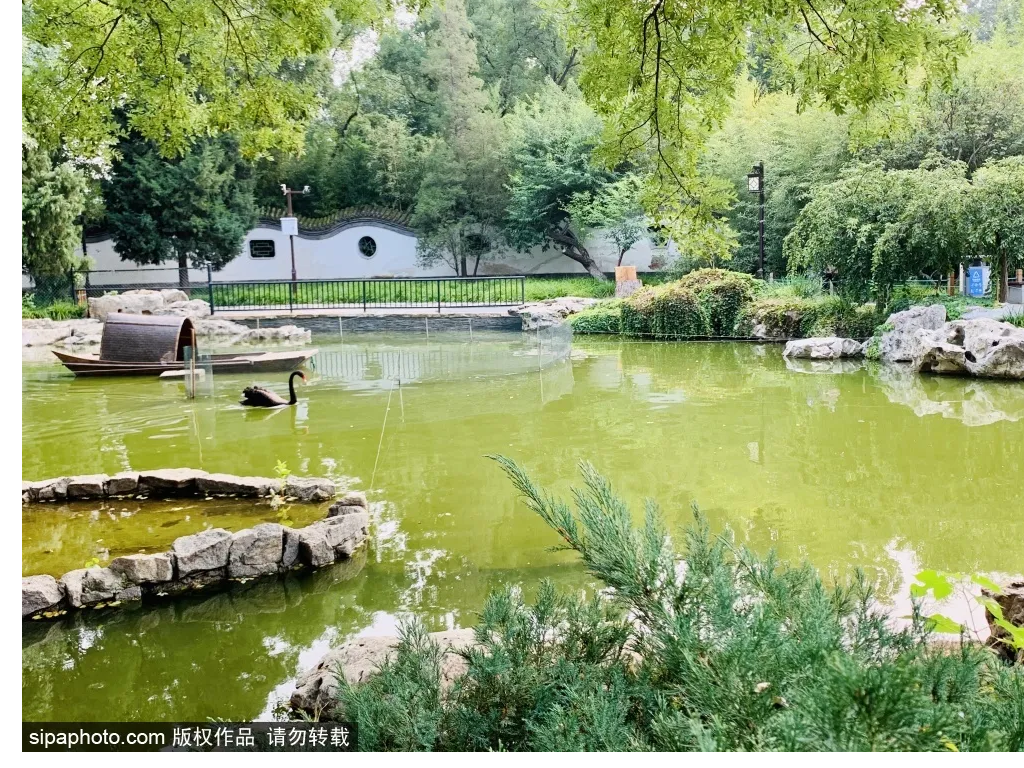 鸳鸯亭在文静榭对面,两侧有小桥流水,湖中小鱼游动,鸭子、天鹅嬉戏,将“静雅”二字体现极致。