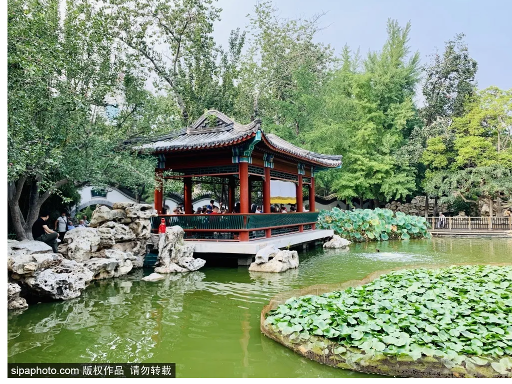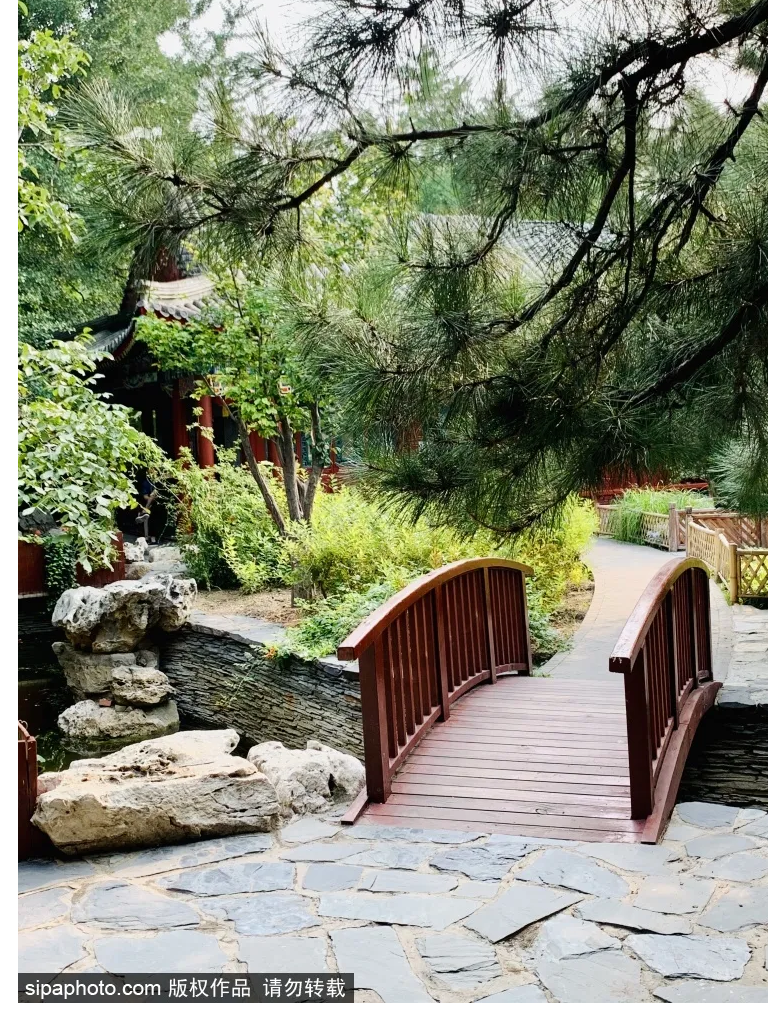 公园虽然不大,但胜在精致,青砖灰瓦,柴扉深院,飞檐翘角,小桥流水,绿波流音,颇有江南园林风光。