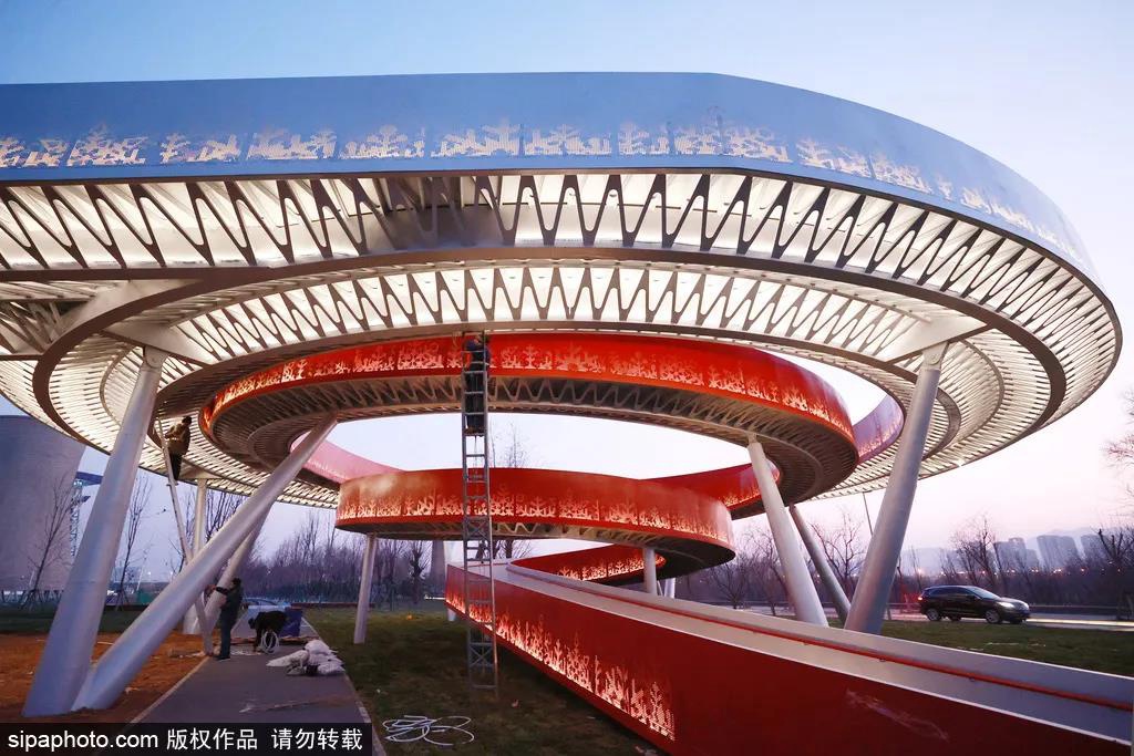 值得一提的是位于首钢滑雪大跳台西北侧的标志性景观节点“冬奥之环”正式亮相,30多个景观节点全部完工。