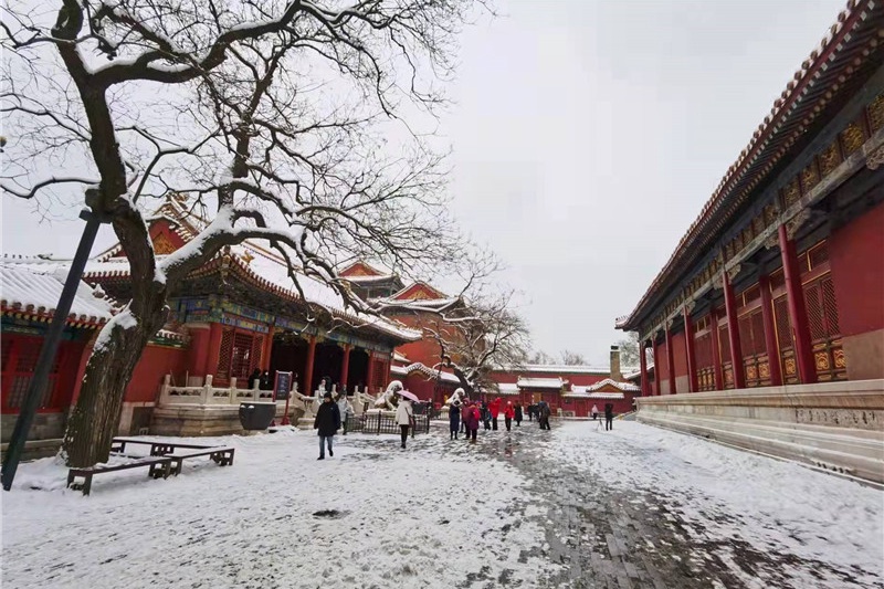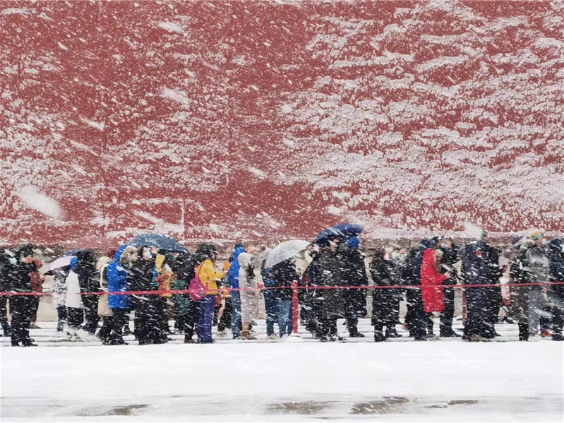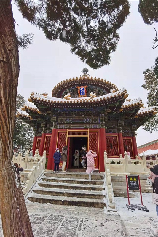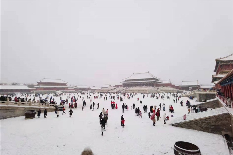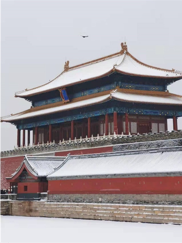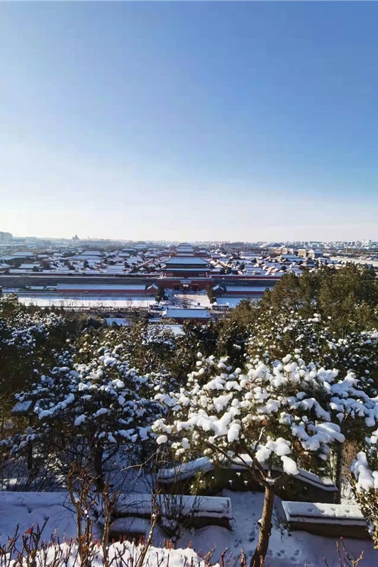 “我慢慢地听,雪落下的声音”层层叠叠的雪,深深浅浅的红。大雪纷飞中的故宫,看不够的红墙白雪……站在景山公园的最高处眺望远方,故宫秒变紫禁城,银装素裹,大气恢宏。