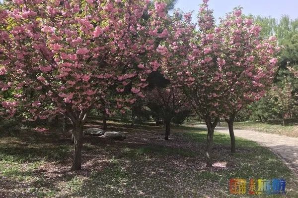 朝阳公园樱花谷以日本晚樱为主景植物,并结合缓坡地形,营造谷地之势的樱花景观,弯曲延伸的S形园路,使樱花谷景象逐步展开,时显时隐、富于变化。
