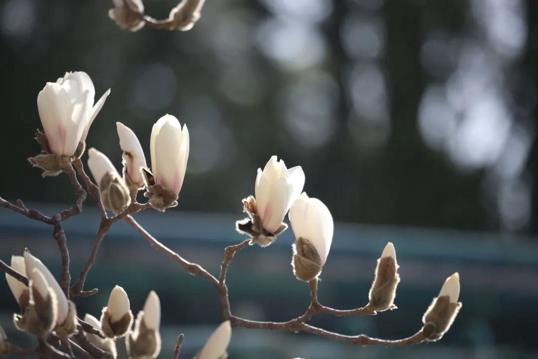 “玉兰随着春意渐浓逐步绽蕾,静静地收藏着又一个春天。