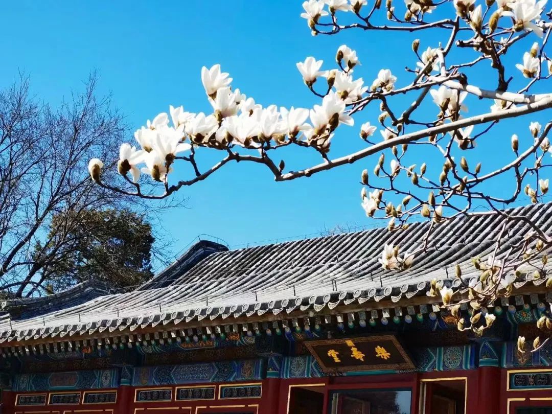 颐和园,玉兰花的栽培历史已超过两百五十年,每到玉兰花开,步入乐寿堂满院芬芳。