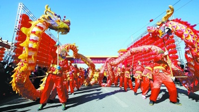 春耕在即,怀柔区北房镇举办渔阳龙狮文化节,26支舞龙队轮番展演。此外,参加演出的还有手狮表演队、小车会、威风锣鼓等传统花会。据悉,北房为秦、汉时期古渔阳郡所在地,有“舞龙之乡”美誉。每年春耕前,当地都举办舞龙会,祈盼风调雨顺、五谷丰登。