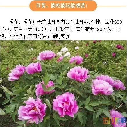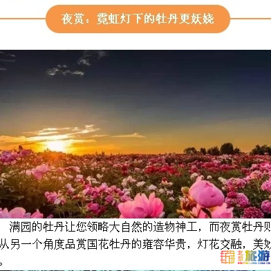 微博称,“牡丹仙子接到天帝玉旨,命其速去人间布置一场春的盛宴。仙子精挑细选,来到北京房山琉璃河镇的大石河畔,拂轻风洒雨露点花蕊,万棵牡丹竞相争艳,便有了眼前这如诗如画的牡丹园!”牡丹园不仅可以白天观赏,夜晚观赏也别有韵味。