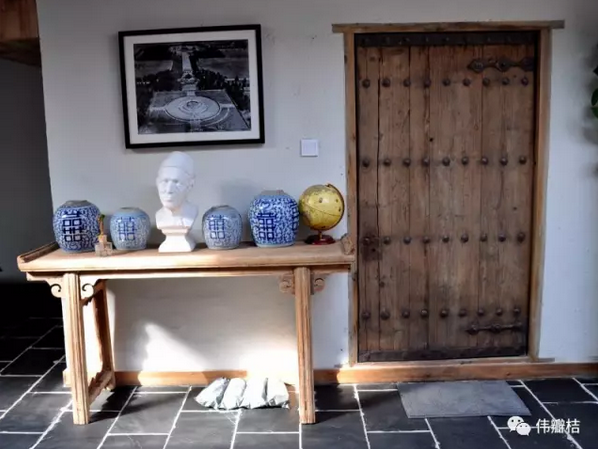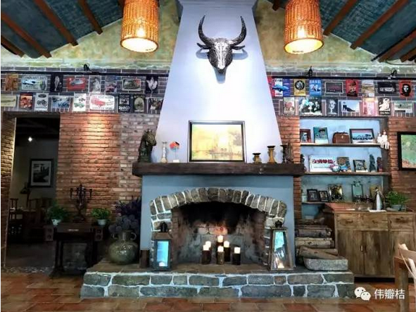 欧式乡村与中式传统两种风格有机结合,一边有从德国淘来的壁炉,一边有榫卯结构的中式桌椅。跨过一道拱门,自由切换毫无压力。
