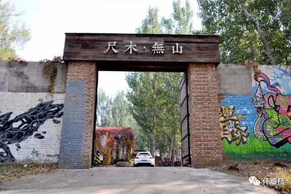 沿着木燕路北行,过了汉石桥湿地公园没多远就会看到路边有一个墙上满是涂鸦的院子,这里就是尺木无山。“打尖、住店”,招牌上的四个字清晰地表明了它的定位。